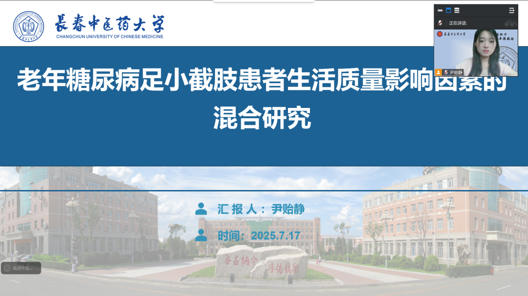 此次活动分享人是2024级护理研究生尹贻静同学和梁乙凡同学,分享主题为慢性病患者的健康管理。