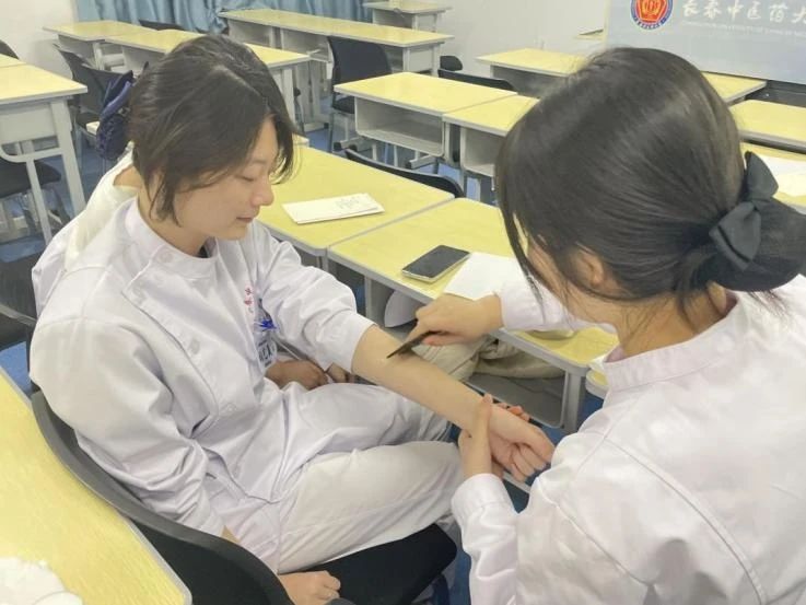 本次培训主要包括四部分内容,分别是中医穴位辨识、基础按摩推拿示教、血压测量和刮痧。薛志龙同学讲解如百会穴、阿是穴等中医常用保健穴位的定位方法及主治功效,及一种家庭保健揉腹手法。曲子涵同学现场详细演示并讲解基础按摩推拿的操作手法。胡双同学围绕刮痧的部位、力度和手法进行了重点讲解,同时还介绍了血压计的使用方法及相关注意事项。主讲团队在学员们分组实操模拟时针对学员们在操作过程的难点和易错点进行纠正,确保正确掌握培训内容。