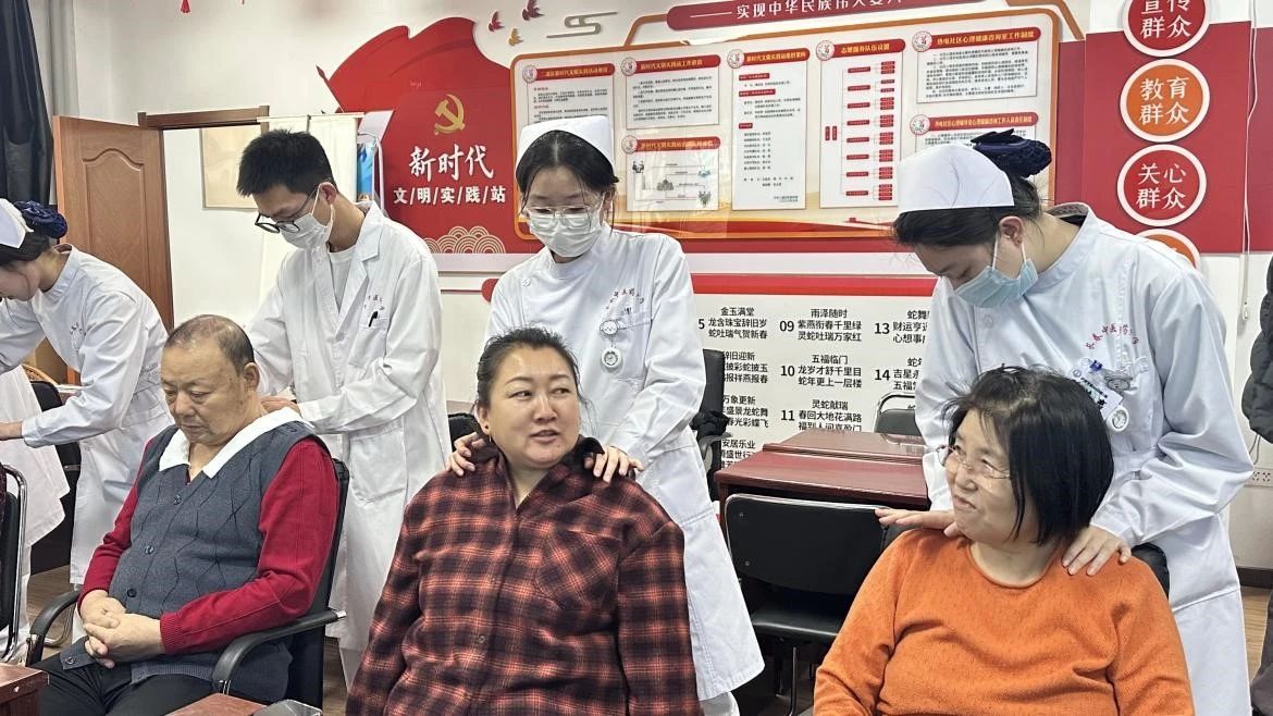 活动现场设置人参产品体验区,志愿者们向社区居民分发宣传手册,讲解人参知识。陈列的人参保健产品吸引居民们积极体验。志愿者们发挥专业所长,为现场居民提供刮痧、按摩、血压测量等基础护理服务,开展养生科普宣教,在轻松愉悦的氛围中提升了社区居民的健康认知水平。