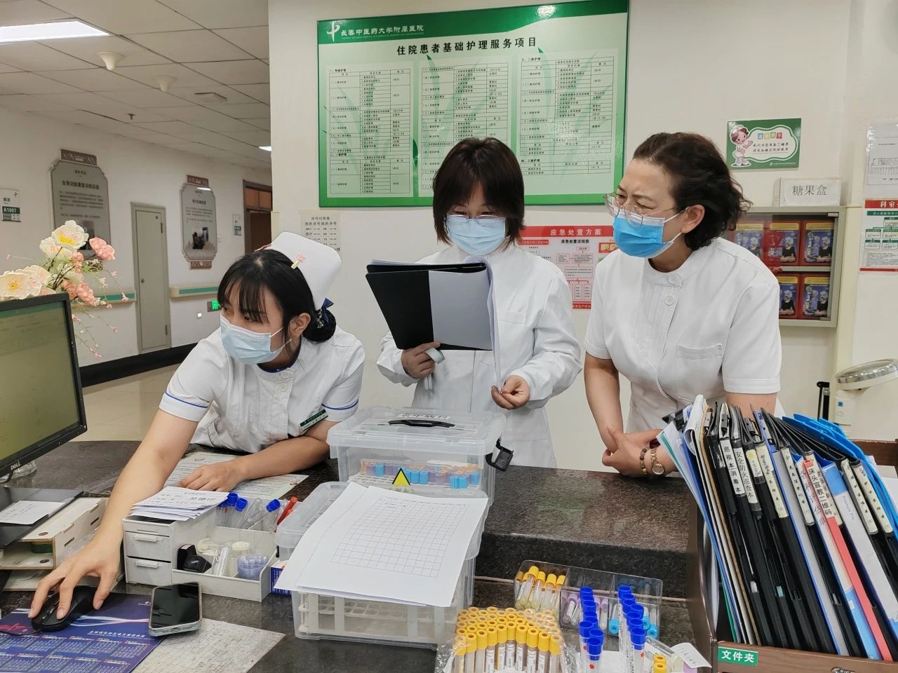 张红石副院长一行对研究生轮转安排表、出勤记录及培养档案进行了检查,重点核对实践导师配备情况及双导师协同指导记录。检查组随机走访了个别科室,围绕实习管理、思政教育、科研课题进展等议题与带教老师进行了深入交流,针对临床轮转中的时间分配、导师沟通机制等问题提出优化建议。